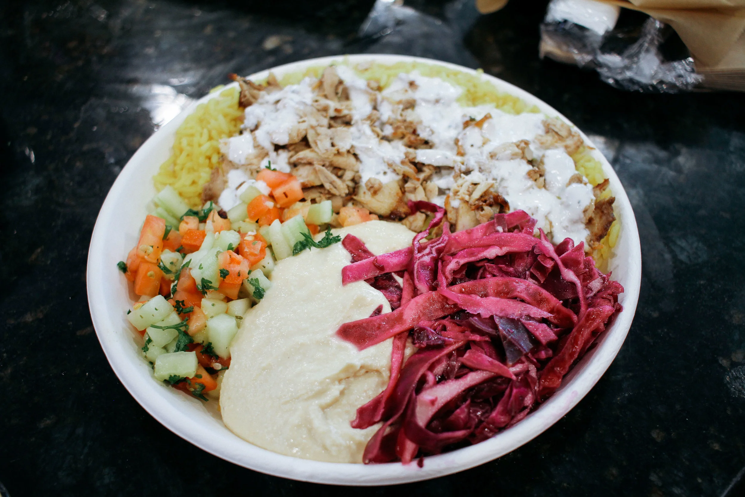 PITA 360...I've been dying to try this place and it knocked my socks off!!! The hummus, the vinegar veggies, the pita bread....OMG OMG. And I had to get me a cup of HONEYMEE ice cream! YUMMMM
